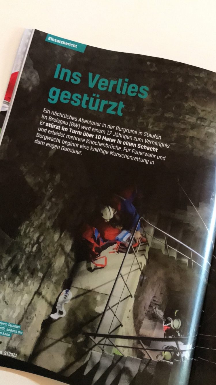 Ende Mai hatten wir einen anspruchsvollen Rettungseinsatz auf dem Schlossberg. Gemeinsam mit der Bergwacht konnten wir einen Jugendlichen aus dem Verlies retten. Nun berichtet das Feuerwehrmagazin in seiner aktuellen Ausgabe über den Einsatz. Das Heft ist ab heute im Zeitschriftenhandel erhältlich.