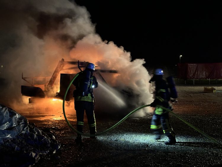 In der Nacht auf Freitag teilten Anwohner der Leitstelle einen Fahrzeugbrand im Gewerbegebiet mit. Beim Eintreffen des Löschfahrzeugs stand der Transporter bereits im Vollbrand. Wir haben das Feuer mit einem Rohr gelöscht. Gegen 1 Uhr konnten wir den Einsatz beenden.