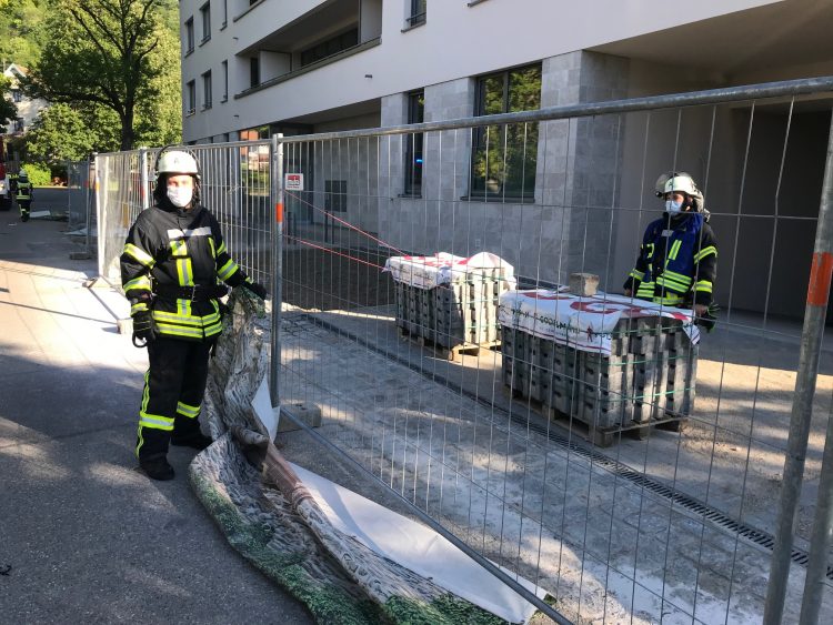 Durch den Wind wurden mehrere Elemente eines Bauzaun umgeweht. Die Besatzung des Hilfeleistungslöschfahrzeug richtete den Zaun wieder auf.
