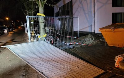 An einer Baustelle in der Albert-Hugard-Straße wurde durch eine Windböe ein Bauzaun umgeworfen. Dieser ragte…