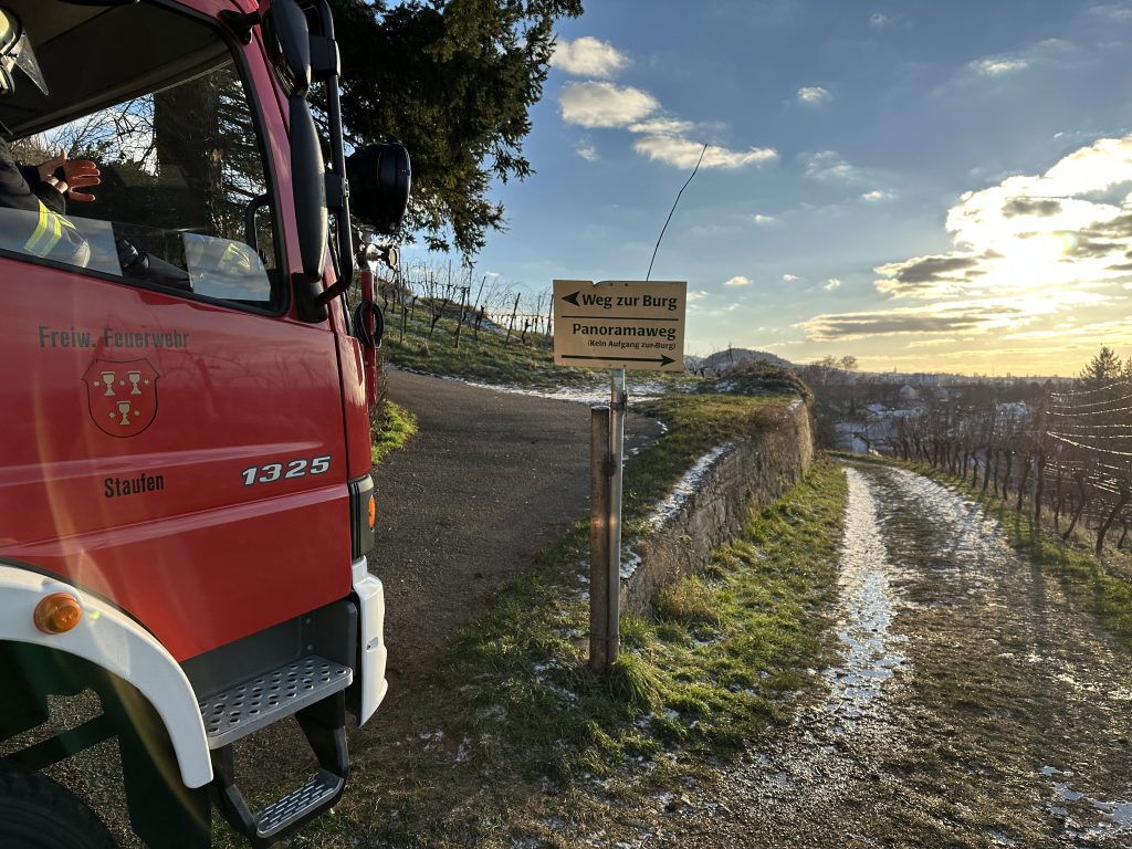 Ein Anwohner aus der Krozinger Straße meldete über Notruf einen Vegetationsbrand am Schlossberg. Bis zu unserem Eintreffen unternahm er erste Löschmaßnahmen mit einer Gießkanne. Wir löschten den Brand vollständig mit einem C-Rohr ab und kontrollierten den Bereich mit einer Wärmebildkamera.