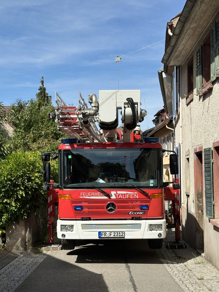 Am Sonntagnachmittag erlitt eine Person im Städtle einen medizinischen Notfall. Da die Treppe in dem historischen Gebäude eng und steil ist, forderte der Rettungsdienst unsere Unterstützung an. Bei unserem Eintreffen war klar, dass der Patient schnellst möglich in die Klinik muss. Durch die sehr beengten Verhältnisse und uneinsichtige Passanten verzögerte sich der Einsatz des Teleskopmast. Somit haben wir den Transport mittels Schleifkorbtrage durch das Treppenhaus durchgeführt, so dass der Abtransport wenige Minuten nach unserem Eintreffen erfolgen konnte.